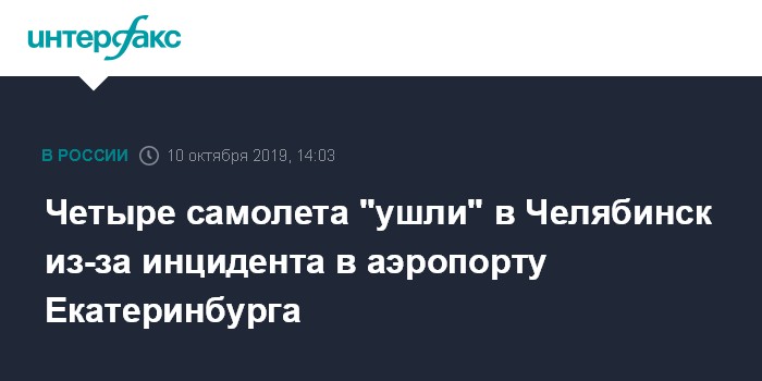 Москва. 10 октября. INTERFAX.RU - Четыре самолета, летевшие в Екатеринбург, сели в Челябинске из-за приостановки работы аэропорта "Кольцово", где аварийно приземлился борт одной из силовых структур.