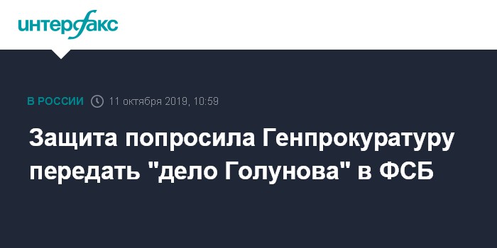 "В обращении мы просим для объективного и более эффективного расследования передать материалы дела для дальнейшей проверки и принятия процессуального решения в Управление "М" ФСБ России", - сообщил "Интерфаксу" адвокат Голунова Сергей Бадамшин.