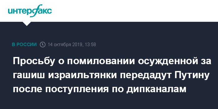 Просьбу о помиловании осужденной за гашиш израильтянки передадут Путину после поступления по дипканалам