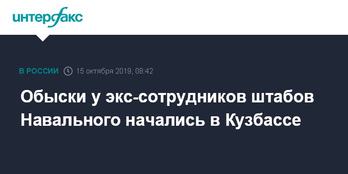 Москва. 15 октября. INTERFAX.RU - Следственные органы проводят обыски у бывших сотрудников штаба оппозиционера Алексея Навального в Кемерово и Новокузнецке.