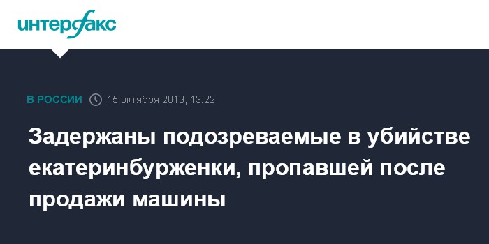 Москва. 15 октября. INTERFAX.RU - Троих подозреваемых в убийстве жительницы Екатеринбурга, которая исчезла при продаже машины на прошлой неделе, задержали в Челябинской области. Об этом сообщил агентству "Интерфакс" информированный источник во вторник.