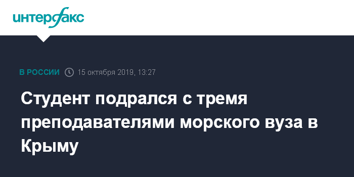 Москва. 15 октября. INTERFAX.RU - Крымские полицейские проводят проверку в связи с конфликтом в Керченском государственном морском технологическом университете (КГМТУ), где студент подрался с преподавателями.