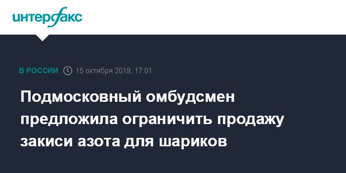 Москва. 15 октября. INTERFAX.RU - Уполномоченный по правам ребенка в Московской области Ксения Мишонова предложила ограничить продажу закиси азота, так называемого "веселящего газа" (N2O), которым надувают воздушные шарики или распространяют в клубах и через интернет. Об этом сообщила пресс-служба омбудсмена.