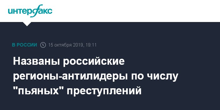 Наибольшее количество "пьяных" преступлений было зафиксировано в Башкортостане - 6669 случаев (84,5% к соответствующему периоду 2018 года) и Свердловской области - 6455 случаев (96,4%).