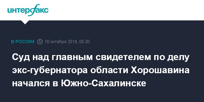 Суд над главным свидетелем по делу экс-губернатора области Хорошавина начался в Южно-Сахалинске
