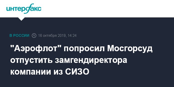 "Аэрофлот" попросил Мосгорсуд отпустить замгендиректора компании из СИЗО