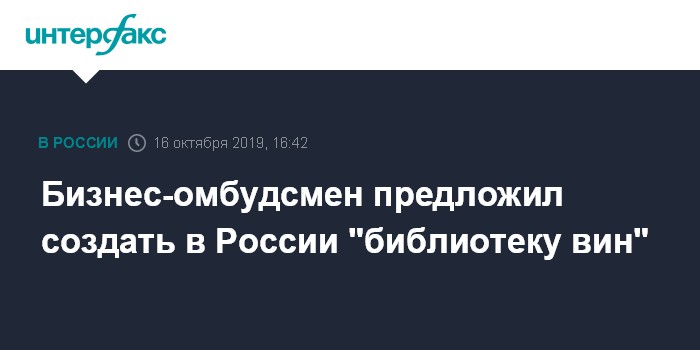 Бизнес-омбудсмен предложил создать в России "библиотеку вин"