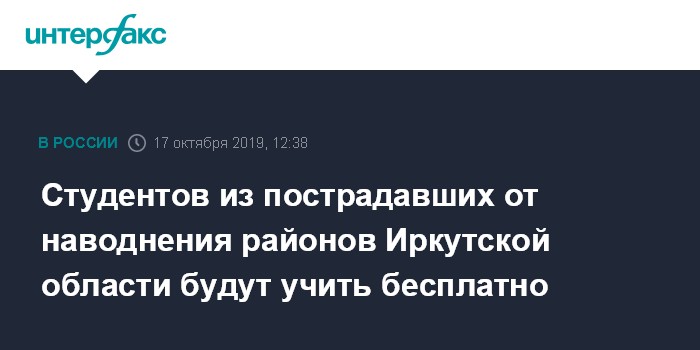Москва. 17 октября. INTERFAX.RU - 308 студентов первых и вторых курсов вузов и колледжей, которые живут в пострадавших от наводнения районах Иркутской области, переведут с платного обучения на бюджетные места. Об этом сообщила пресс-служба правительства региона.