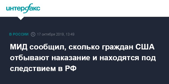 Москва. 17 октября. INTERFAX.RU - В местах заключения или под следствием в России в настоящий момент находятся 22 гражданина США, сообщила официальный представитель МИД России Мария Захарова.