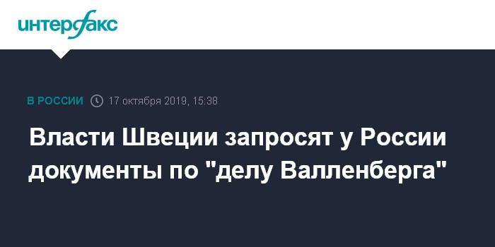 В RWI-70 добавили, что список документов, которые власти Швеции должны потребовать российских коллег немедленно предоставить, направлен родственниками Валленберга в МИД Швеции с пояснениями о том, почему каждый из этих документов важен для дела.