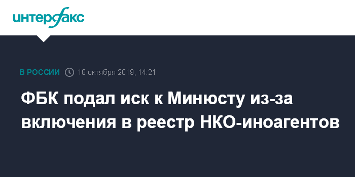 ФБК просит признать незаконным его внесение в реестр и обязать Минюст исключить организацию из этого списка.