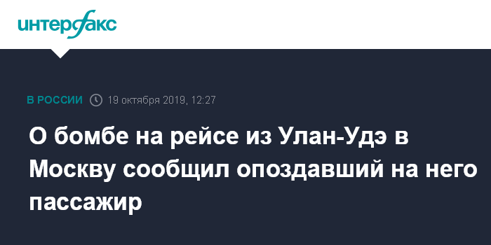 О бомбе на рейсе из Улан-Удэ в Москву сообщил опоздавший на него пассажир