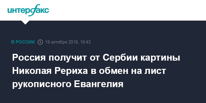 Россия получит от Сербии картины Николая Рериха в обмен на лист рукописного Евангелия
