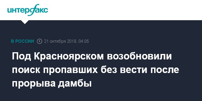Утром 19 октября в Красноярском крае произошло каскадное разрушение пяти дамб на реке Сейба в поселке золотодобывающей артели ООО "Сисим". Хлынувшая вода затопила два рабочих общежития временного типа. По последним данным, погибли 15 человек, 16 пострадали.