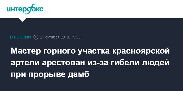 Мастер горного участка красноярской артели арестован из-за гибели людей при прорыве дамб