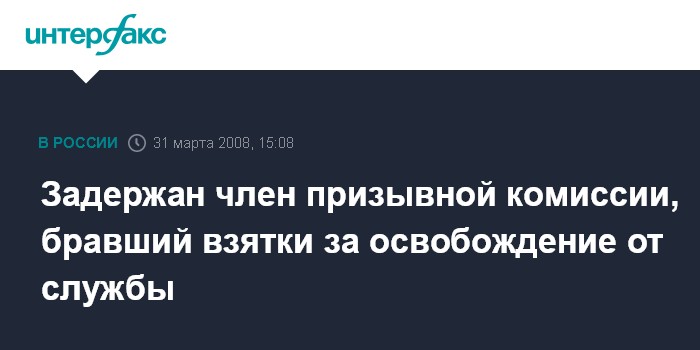 Задержан член призывной комиссии, бравший взятки за освобождение от службы