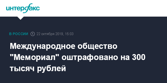 Международное общество "Мемориал" оштрафовано на 300 тысяч рублей