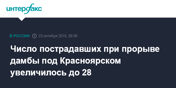 Число пострадавших при прорыве дамбы под Красноярском увеличилось до 28