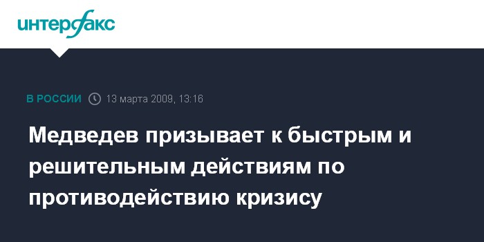 Медведев призывает к быстрым и решительным действиям по противодействию кризису