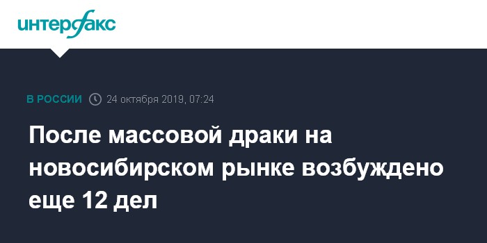 Москва. 24 октября. INTERFAX.RU - После опроса торговцев с Хилокского рынка в Новосибирске, где 7 октября произошла массовая драка со стрельбой, возбуждено еще 12 уголовных дел, сообщает в четверг пресс-служба МВД Киргизии.