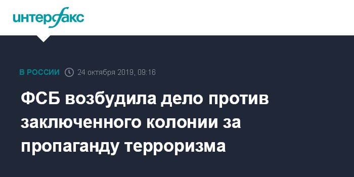 Москва. 24 октября. INTERFAX.RU - Следственное подразделение управления ФСБ России по Курганской области возбудило уголовное дело в отношении заключенного одной из колоний за пропаганду терроризма.