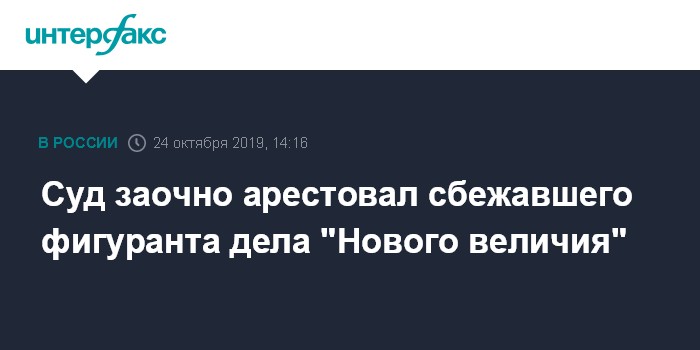 Суд заочно арестовал сбежавшего фигуранта дела "Нового величия"