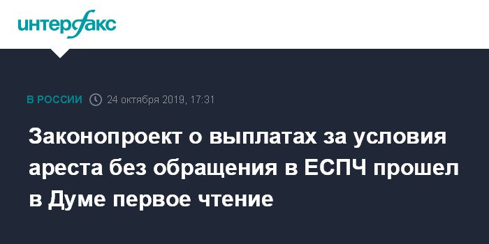 Москва. 24 октября. INTERFAX.RU - Госдума приняла в первом чтении правительственный законопроект, призванный запустить общенациональный механизм компенсаций пострадавшим от нарушений условий содержания в местах лишения свободы.