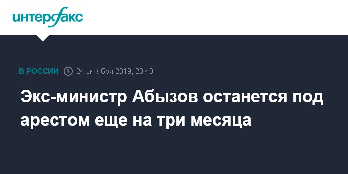 Москва. 24 октября. INTERFAX.RU - Басманный суд Москвы продлил срок содержания в СИЗО до 25 января бывшего министра по делам Открытого правительства Михаила Абызова, обвиняемого в мошенничестве и организации преступного сообщества, передает корреспондент "Интерфакса" из зала суда в четверг.