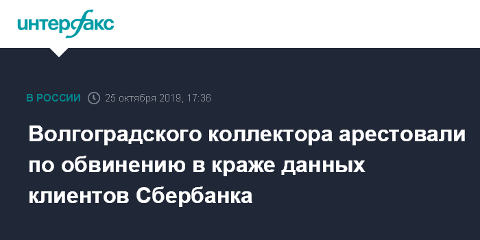 24 октября "Коммерсантъ" сообщил об утечке данных клиентов, имеющих кредитные карты Сбербанка или взявших там кредиты, речь шла о персональных данных вплоть до записей телефонных разговоров с ними. В МВД заявили, что по подозрению в хищении данных банковских клиентов задержали жителя Волгограда, сотрудника Национальной службы взыскания. На него завели дело о разглашении сведений, составляющих банковскую тайну.