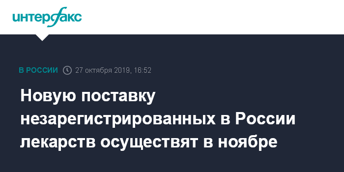 Новую поставку незарегистрированных в России лекарств осуществят в ноябре