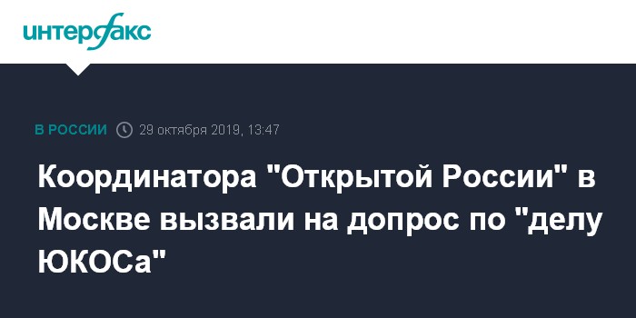 Координатора "Открытой России" в Москве вызвали на допрос по "делу ЮКОСа"