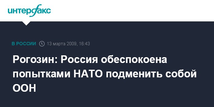Рогозин: Россия обеспокоена попытками НАТО подменить собой ООН