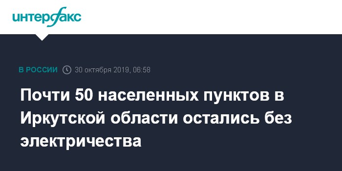 Москва. 30 октября. INTERFAX.RU - Жители 47 поселений в шести районах Иркутской области оказались ночью в среду без электроэнергии из-за шквалистого ветра, сообщили агентству "Интерфакс-Сибирь" в пресс-службе главного управления МЧС по региону.