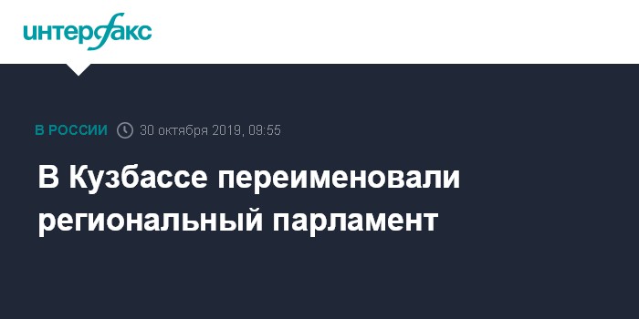 Москва. 30 октября. INTERFAX.RU - Совет народных депутатов Кемеровской области переименован в Заксобрание, такие поправки депутаты внесли в устав региона. Это изменение вступит в силу с 1 декабря 2019 года.
