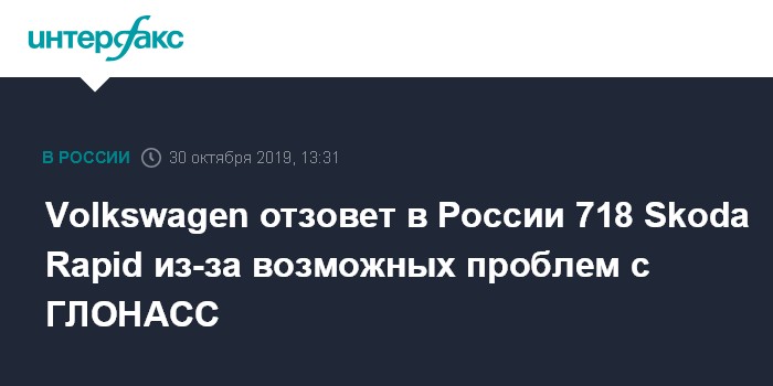 Москва. 30 октября. INTERFAX.RU - Российское подразделение немецкого автоконцерна Volkswagen ООО "Фольксваген Груп Рус" отзывает в России 718 автомобилей Skoda Rapid, говорится в сообщении Росстандарта.