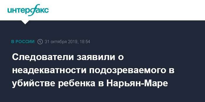 Следователи заявили о неадекватности подозреваемого в убийстве ребенка в Нарьян-Маре