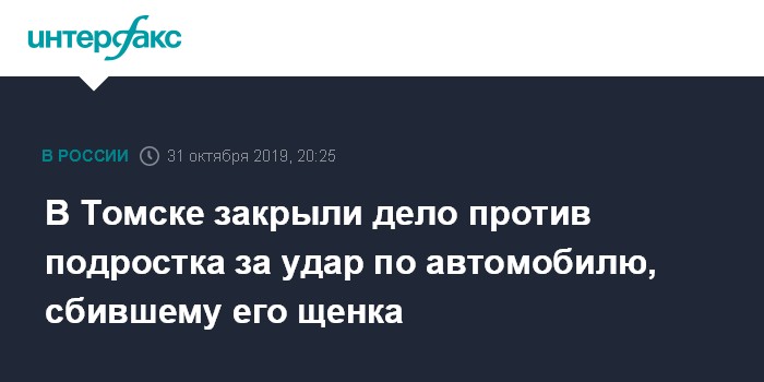 Москва. 31 октября. INTERFAX.RU - Следственное управление СКР по Томской области прекратило уголовное дело в отношении подростка, который ударил по капоту автомобиля, задавившего его щенка, сообщает пресс-служба СКР.