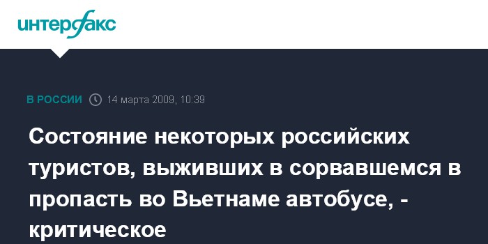 Состояние некоторых российских туристов, выживших в сорвавшемся в пропасть во Вьетнаме автобусе, - критическое