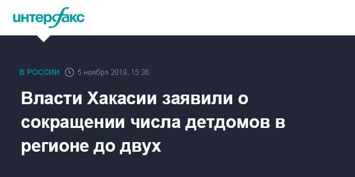 Москва. 5 ноября. INTERFAX.RU - В Хакасии из-за активного пристройства сирот в приемные семьи "стремительно сокращается" количество детских домов. Скоро будет закрыт Абазинский детдом, тогда в республике их останется два - в Черногорске и Саяногорске. Об этом сообщила пресс-служба администрации региона.