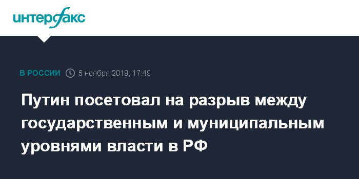 Москва. 5 ноября. INTERFAX.RU - Президент РФ Владимир Путин вновь обратил внимание на разрыв между государственным и муниципальным уровнями власти и на то, что эта проблема проистекает из Конституции страны.