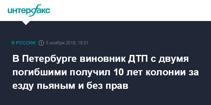 В Петербурге виновник ДТП с двумя погибшими получил 10 лет колонии за езду пьяным и без прав