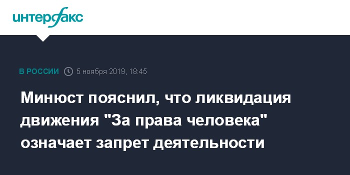 Минюст пояснил, что ликвидация движения "За права человека" означает запрет деятельности