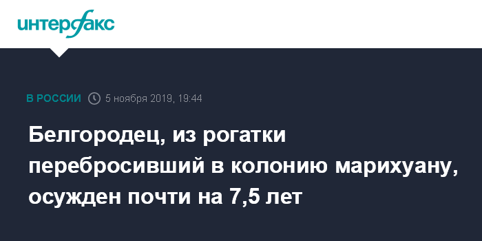 Москва. 5 ноября. INTERFAX.RU - Свердловский районный суд Белгорода вынес приговор за незаконный сбыт наркотиков жителю Белгородской области, который с помощью рогатки переправил в колонию марихуану, сообщает пресс-служба областного суда.