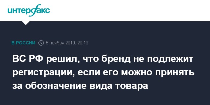 ВС РФ решил, что бренд не подлежит регистрации, если его можно принять за обозначение вида товара