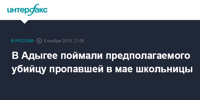 Москва. 5 ноября. INTERFAX.RU - Задержан подозреваемый в убийстве 16-летней школьницы, пропавшей в мае в Майкопе, сообщает пресс-служба управления СК РФ по Адыгее.