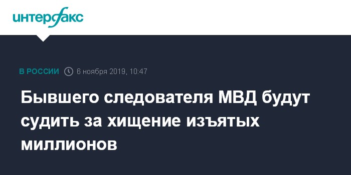 Бывшего следователя МВД будут судить за хищение изъятых миллионов