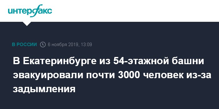 В Екатеринбурге из 54-этажной башни эвакуировали почти 3000 человек из-за задымления