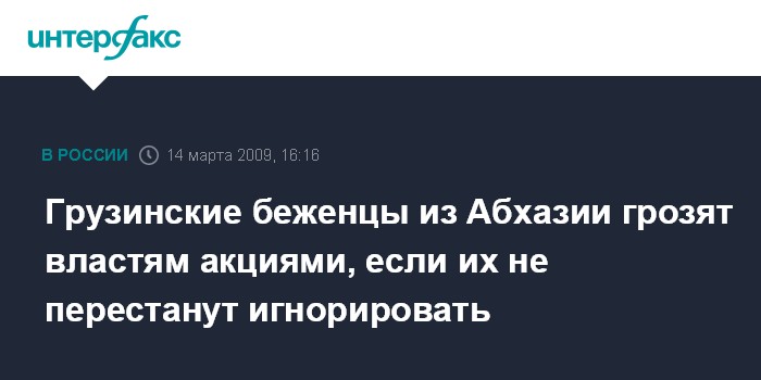 Москва. 14 марта. INTERFAX.RU - Грузинские беженцы из Абхазии на съезде в субботу в Тбилиси потребовали от властей Грузии решить их социальных проблемы.