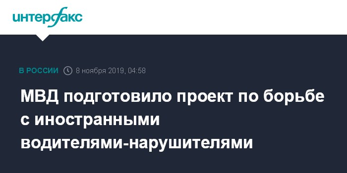 Москва. 8 ноября. INTERFAX.RU - Министерство внутренних дел России (МВД) совместно с министерством транспорта РФ, Федеральной таможенной службой (ФТС) и другими ведомствами по поручению правительства подготовило проект "дорожной карты" для борьбы с иностранными гражданами, нарушающими правила дорожного движения (ПДД) на территории России, сообщает в пятницу газета "Коммерсант".