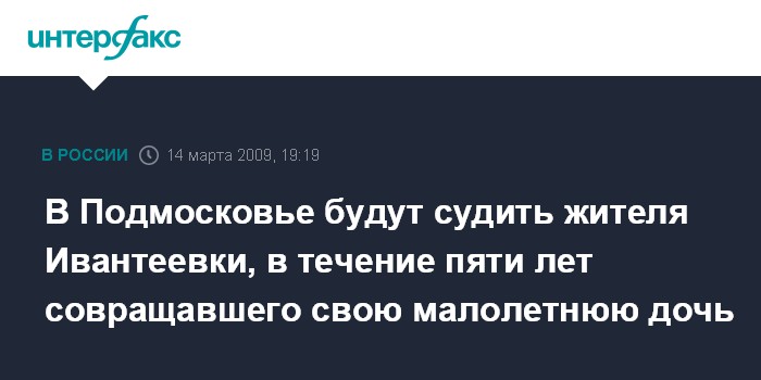 Москва. 14 марта. ИНТЕРФАКС - В Подмосковье тридцатилетний мужчина предстанет перед судом за совращение своей 10-летней дочери.